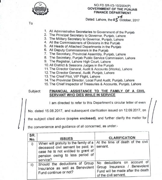 Notification of Clarification Financial Assistance Punjab , The finance department is responsible for supervision and control of provincial finances, preparation of provincial budget, formulation of financial rules and civil services rules.